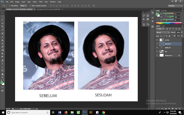 Ohya, saya tambahin lagi nih buat teman-teman yang mau mencoba belajar bikin smudge painting khususnya bagi pemula, ingat ya bahwa kalian harus tau dalam pemakaian smudge tool supaya bisa menikmati hasil yang baik, hendaknya kalian harus bisa mengikuti alur wajah, jangan sekali kali melawan arus, usahakan satu arah. lakukan secara perlahan dan penuh dengan kesabaran.