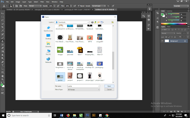 Pertama, buka aplikasi Adobe Photoshop. lalu langsung klik menu option file > open.