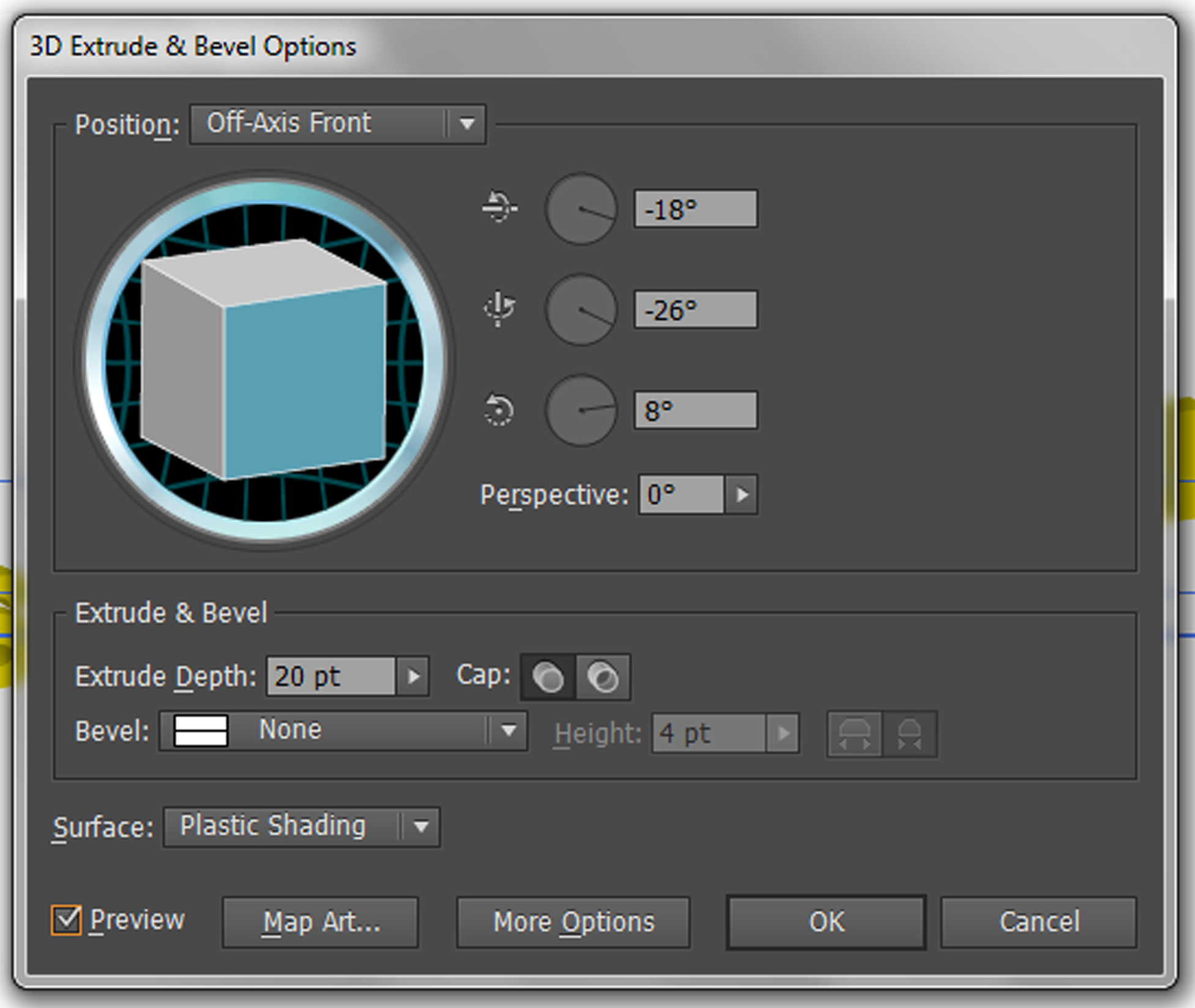 langkah berikutnya akan keluar sebuah window settingan untuk Extrude & Bevel.. yang tadi kita pilih, kemudian yang pertama teman-teman harus klik ada Preview pada bagian sudut kanan bawah, agar terlihat perubahannya. kemudian barulah teman-teman atur sesuai dengan keinginan dan selera masing-masing.