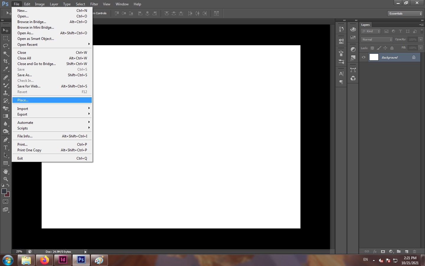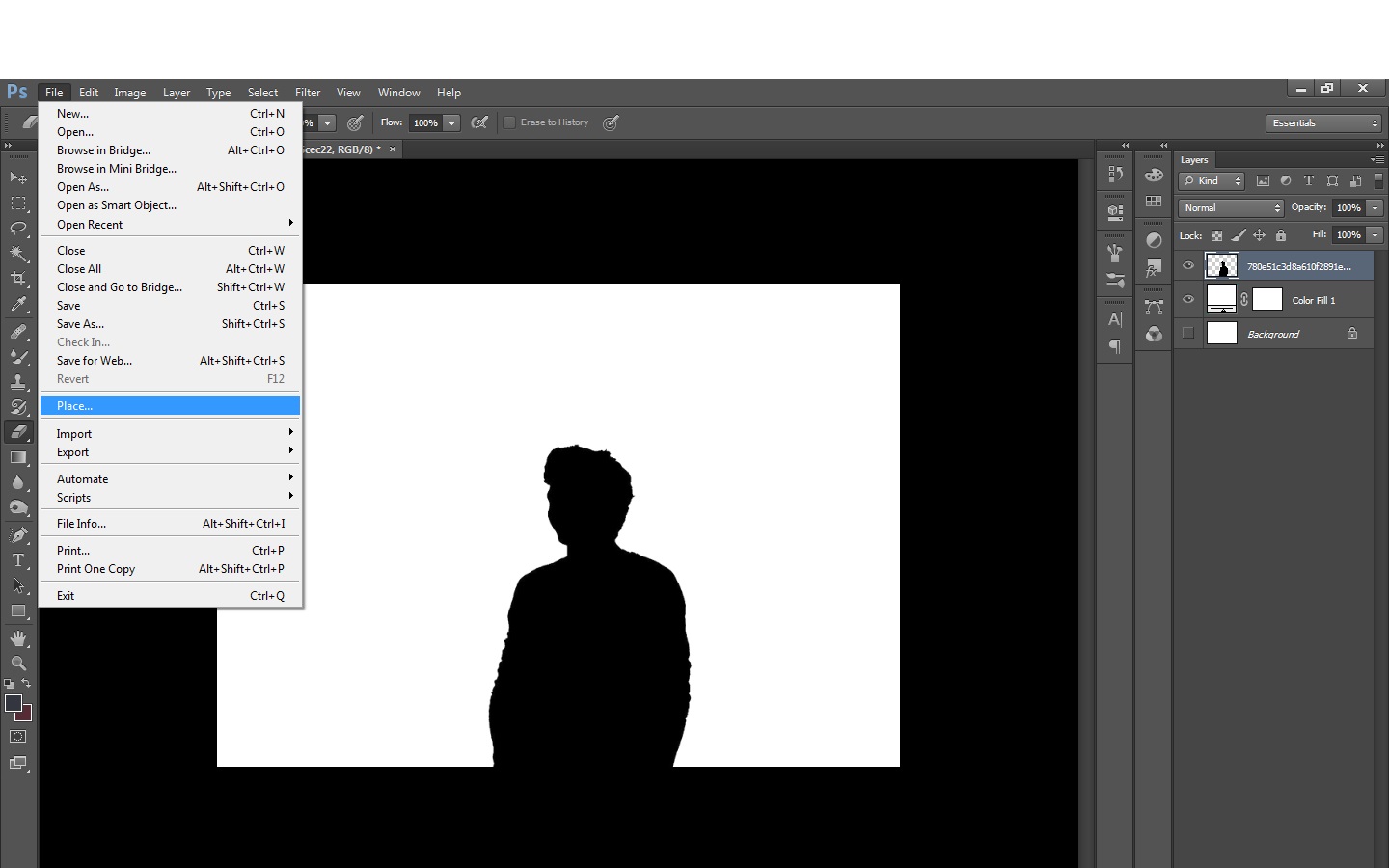 Kedua, Klik File lalu klik place, masukkan gambar orang atau siluet yang ingin kalian jadikan double exposure