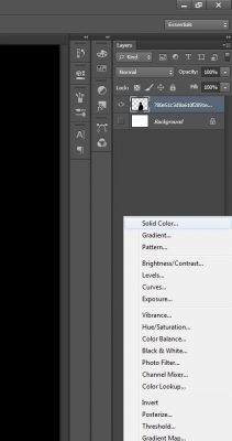 Ketiga, setelah di masukkan gambarnya, klik Create New Fill or Adjustment Layer yang ada di pojok kanan bawah dan pilih solid Color dan ubah ke warna putih