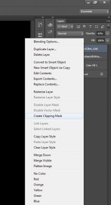 Setelah itu klik Kanan mouse pada layer gambar kedua lalu pilih Create Clipping Mask